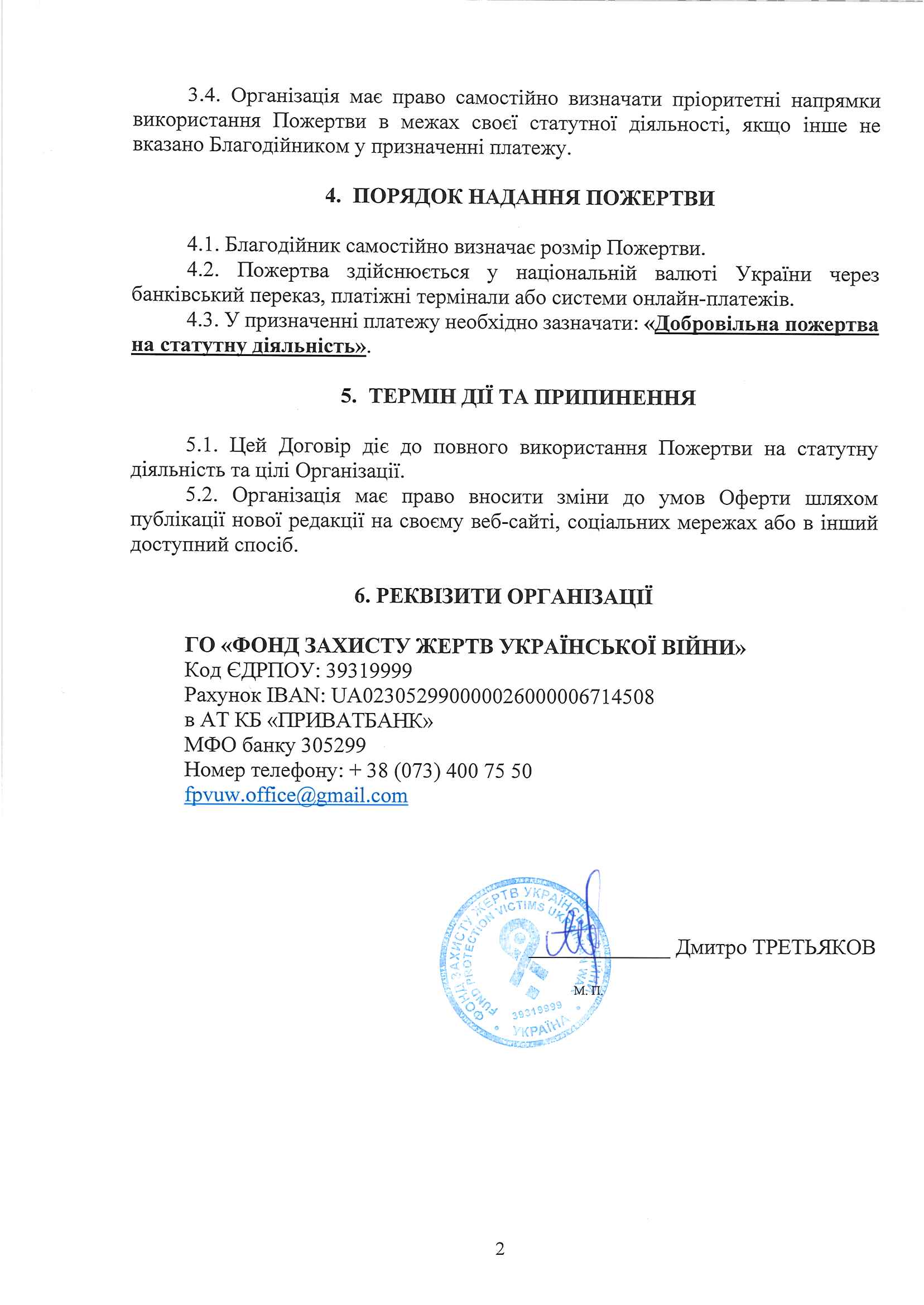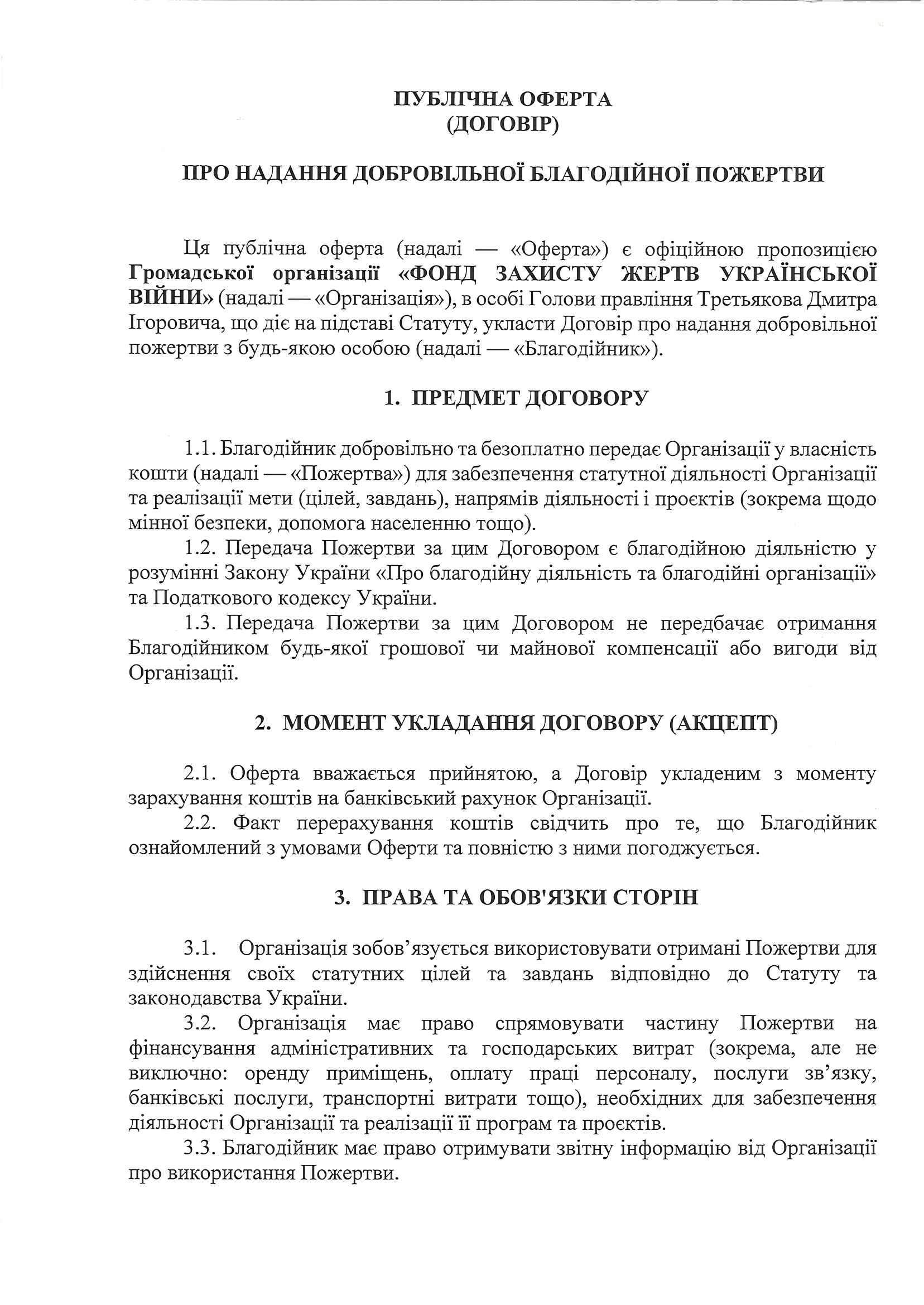 Публічна оферта (Договір) про надання добровільної благодійної пожертви